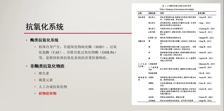 (4)植物提取物:多糖類、多酚類、皂苷類、氨基酸類等。具有生物活性高、毒副作用小、殘留率低,正成為抗畜禽氧化應(yīng)激研究的熱點(diǎn)。